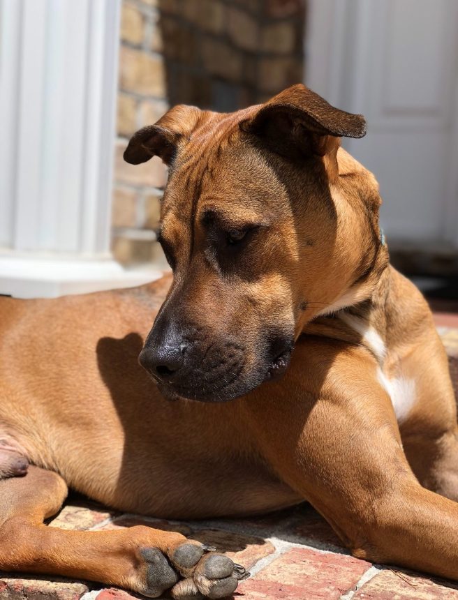My best friend was abandoned at 11 weeks old and was found walking along a railroad track in the middle of nowhere, North Carolina. He has golden brown, short fur, droopy cheeks, and chunky paws. It was love at first Facebook picture. His name is Buddy and he’s a rescue dog.