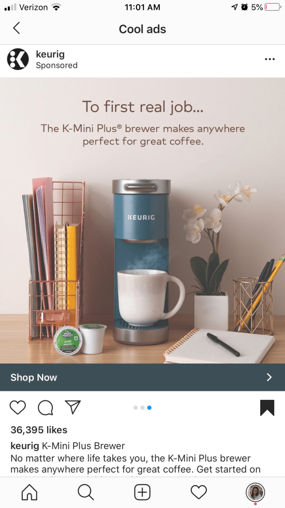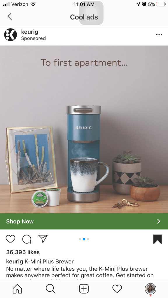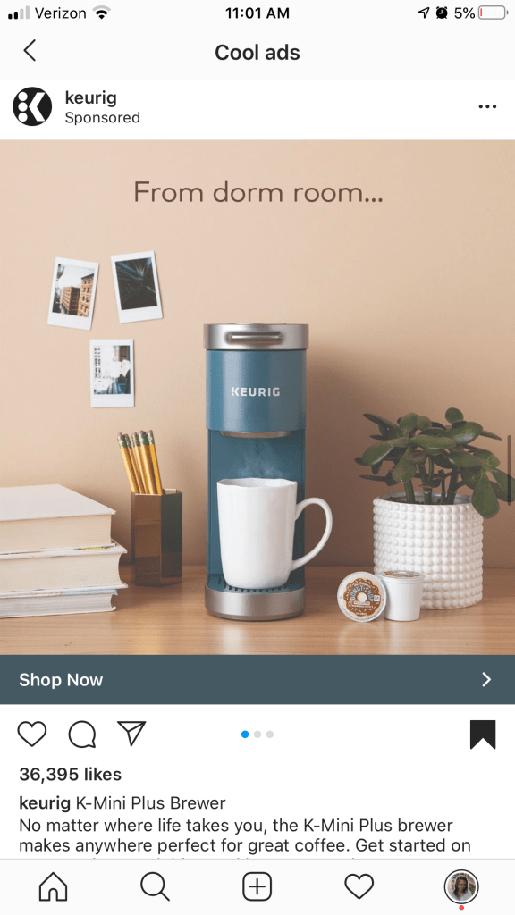 A third Instagram ad that stood out to me was an ad for Keurig. A company that makes coffee machines.