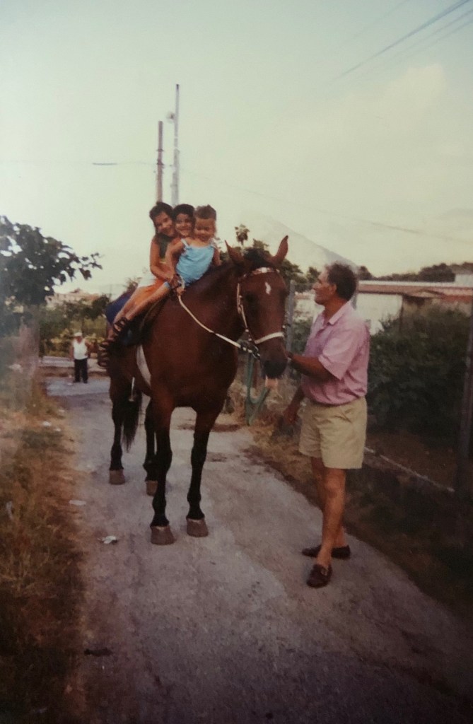While I can’t be with my dad’s side as often as we’d like we still have weekly Facebook messenger video calls. And we try to visit them whenever possible. My Nonno Filippo used to have a pony and carriage. I remember visiting when I was a kid and riding around town.